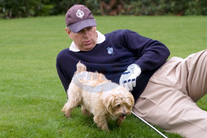 Picture by John Powell / RetnaCelebs - Picture shows - Prince Andrew relaxing with his pet dog. 16th May 2006.Job: 17951 JPL, Credit:John Powell / Avalon