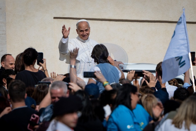 Pope Leo XIV meets the students participating in the Jubilee of the Educational World in St. Peter's Square in Vatican City, Vatican, on 31 October 2025.
