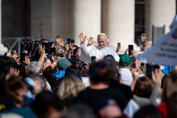 Pope Leo XIV meets the students participating in the Jubilee of the Educational World in St. Peter's Square in Vatican City, Vatican, on 31 October 2025.