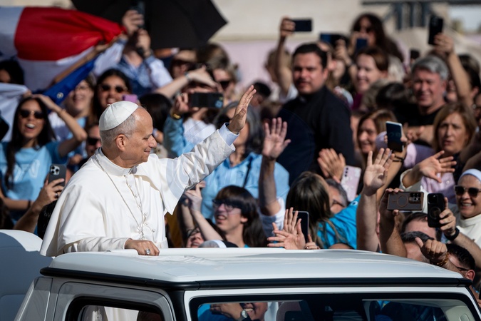 Pope Leo XIV meets the students participating in the Jubilee of the Educational World in St. Peter's Square in Vatican City, Vatican, on 31 October 2025.