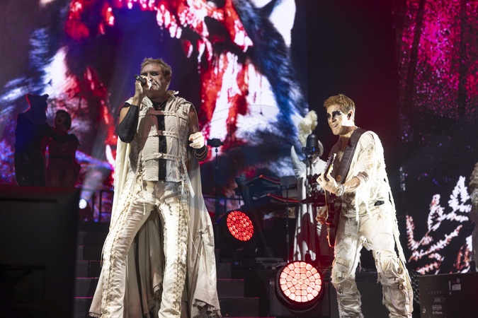 Simon Le Bon and Dominic Brown perform at a special Halloween concert in costume at Co-Op Live, Manchester, 31st October 2025, Credit:Mike Gray / Avalon