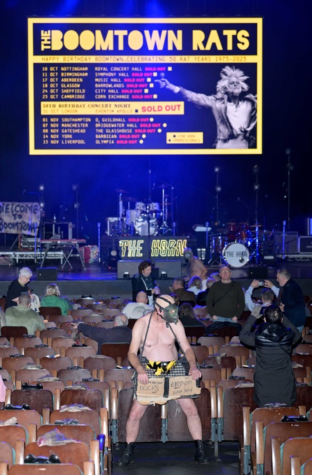 Atmosphere at The Boomtown Rats celebrate their 50th Anniversary since their first gig., The audience were all given Rat masks to wear for the show, Credit:Jules Annan / Avalon