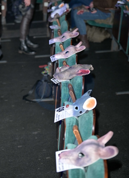 Atmosphere at The Boomtown Rats celebrate their 50th Anniversary since their first gig., The audience were all given Rat masks to wear for the show, Credit:Jules Annan / Avalon
