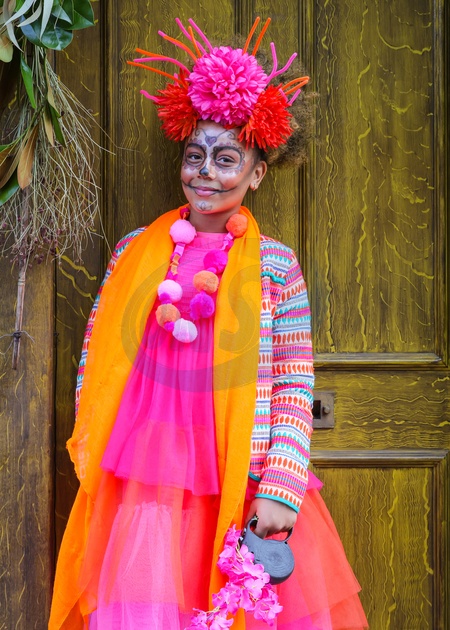 London, UK. 01st Nov, 2025. A participant poses ahead of the parade. Participants in their lavish costumes mingle and get ready, then parade around Columbia Road. Columbia Road comes alive to celebrate London's Day of the Dead, a traditional Mexican festival joyfully honouring the departed., Credit:Imageplotter / Avalon