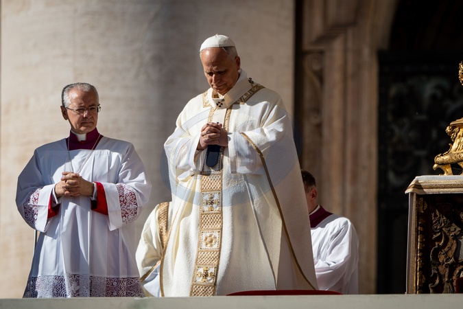 Pope Leo XIV presides over Mass with participants in the Jubilee of the World of Education on the Solemnity of All Saints, in St. Peter's Square in Vatican City, Vatican, on 01 November 2025.