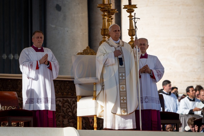 Pope Leo XIV presides over Mass with participants in the Jubilee of the World of Education on the Solemnity of All Saints, in St. Peter's Square in Vatican City, Vatican, on 01 November 2025.