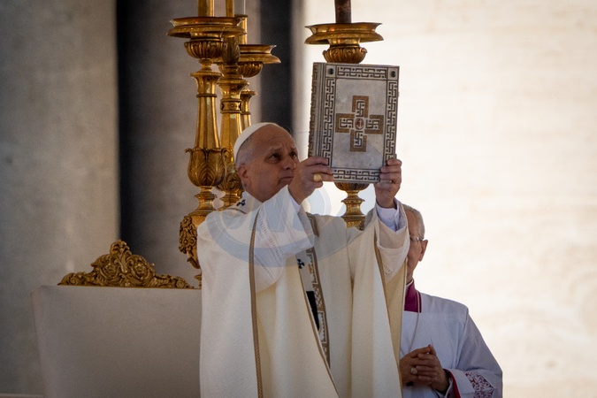 Pope Leo XIV presides over Mass with participants in the Jubilee of the World of Education on the Solemnity of All Saints, in St. Peter's Square in Vatican City, Vatican, on 01 November 2025.