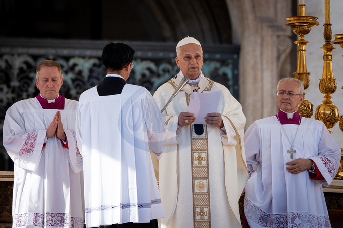 Pope Leo XIV presides over Mass with participants in the Jubilee of the World of Education on the Solemnity of All Saints, in St. Peter's Square in Vatican City, Vatican, on 01 November 2025.