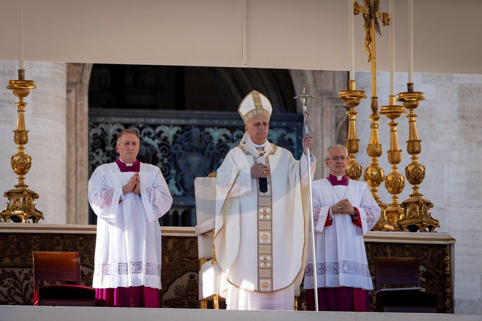 Pope Leo XIV presides over Mass with participants in the Jubilee of the World of Education on the Solemnity of All Saints, in St. Peter's Square in Vatican City, Vatican, on 01 November 2025.