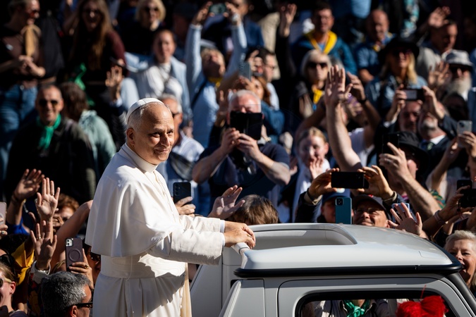 Pope Leo XIV presides over Mass with participants in the Jubilee of the World of Education on the Solemnity of All Saints, in St. Peter's Square in Vatican City, Vatican, on 01 November 2025.