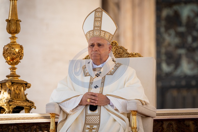 Pope Leo XIV presides over Mass with participants in the Jubilee of the World of Education on the Solemnity of All Saints, in St. Peter's Square in Vatican City, Vatican, on 01 November 2025.