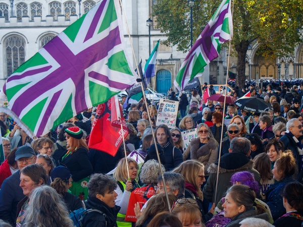 Demonstrators at the No Men In Women's Prisons march, London, UK, 1 November 2025, Credit:Alex Day / Avalon