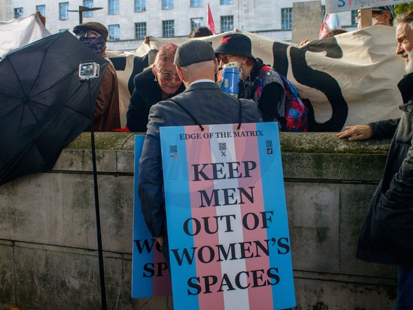 Demonstrators from various transgender rights groups under the "ANTIFA" banner counter protest the "No Men In Women's Prisons" march, London, UK, 1 November 2025, Credit:Alex Day / Avalon