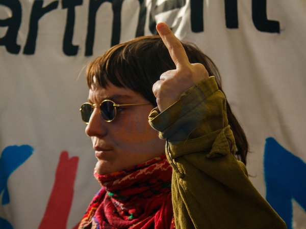 Demonstrators from various transgender rights groups under the "ANTIFA" banner counter protest the "No Men In Women's Prisons" march, London, UK, 1 November 2025, Credit:Alex Day / Avalon