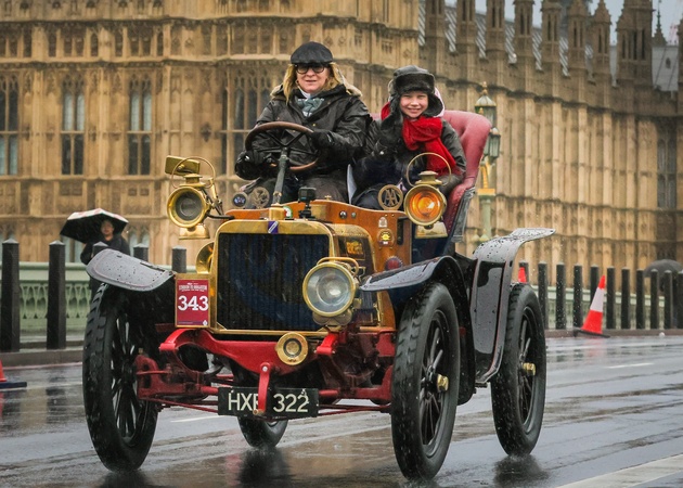 London to Brighton Veteran Car Run on Westminster Bridge, London, UK