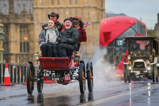 London to Brighton Veteran Car Run on Westminster Bridge, London, UK
