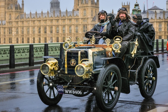 London to Brighton Veteran Car Run on Westminster Bridge, London, UK