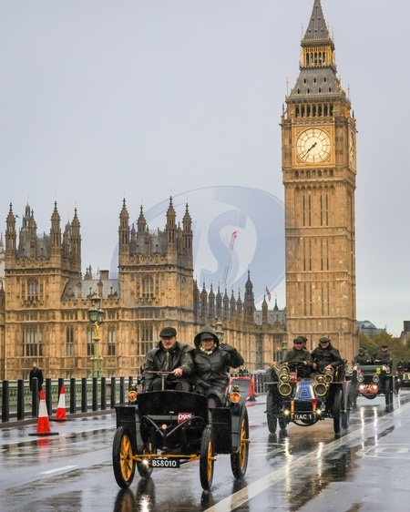 London to Brighton Veteran Car Run on Westminster Bridge, London, UK