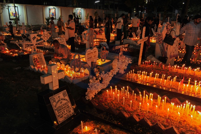 Chattogram, Bangladesh — Bangladeshi Christian devotees gather at the Catholic Church in Patharghata to offer prayers for the souls of the departed during All Souls' Day, a day of remembrance and reflection for the faithful departed., Credit:Md Rafayat Haque Khan / Avalon