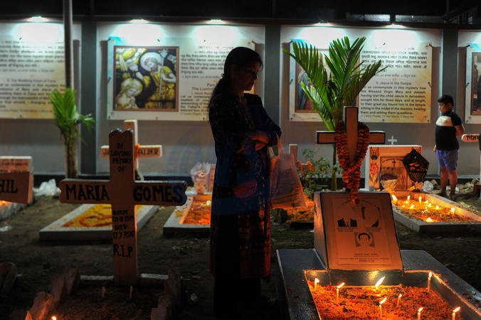 Chattogram, Bangladesh — Bangladeshi Christian devotees gather at the Catholic Church in Patharghata to offer prayers for the souls of the departed during All Souls' Day, a day of remembrance and reflection for the faithful departed., Credit:Md Rafayat Haque Khan / Avalon
