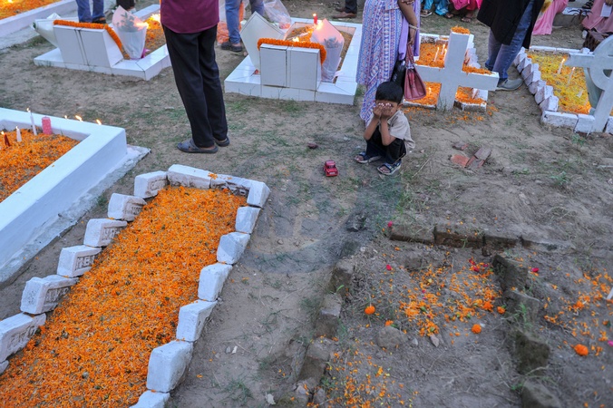 Chattogram, Bangladesh — Bangladeshi Christian devotees gather at the Catholic Church in Patharghata to offer prayers for the souls of the departed during All Souls' Day, a day of remembrance and reflection for the faithful departed., Credit:Md Rafayat Haque Khan / Avalon