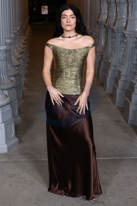 MUSEUM ROW, MIRACLE MILE, LOS ANGELES, CALIFORNIA, USA - NOVEMBER 01: Lorde (Ella Marija Lani Yelich-O'Connor) wearing Versace SS26 RTW arrives at the 14th Annual LACMA (Los Angeles County Museum of Art) Art + Film Gala 2025 presented by Gucci held at the Los Angeles County Museum of Art on November 1, 2025 in Museum Row, Miracle Mile, Los Angeles, California, United States., Credit:Xavier Collin / Avalon