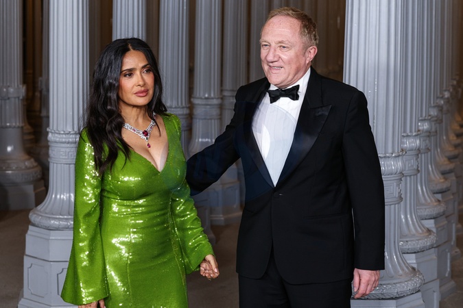 MUSEUM ROW, MIRACLE MILE, LOS ANGELES, CALIFORNIA, USA - NOVEMBER 01: Salma Hayek Pinault and husband Francois-Henri Pinault arrive at the 14th Annual LACMA (Los Angeles County Museum of Art) Art + Film Gala 2025 presented by Gucci held at the Los Angeles County Museum of Art on November 1, 2025 in Museum Row, Miracle Mile, Los Angeles, California, United States., Credit:Xavier Collin / Avalon