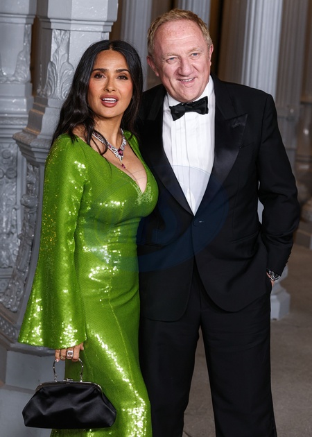 MUSEUM ROW, MIRACLE MILE, LOS ANGELES, CALIFORNIA, USA - NOVEMBER 01: Salma Hayek Pinault and husband Francois-Henri Pinault arrive at the 14th Annual LACMA (Los Angeles County Museum of Art) Art + Film Gala 2025 presented by Gucci held at the Los Angeles County Museum of Art on November 1, 2025 in Museum Row, Miracle Mile, Los Angeles, California, United States., Credit:Xavier Collin / Avalon