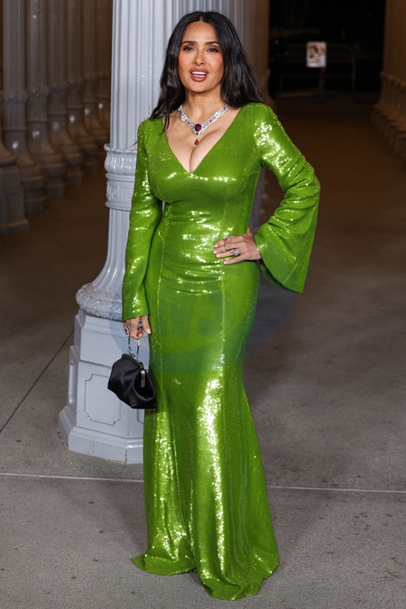 MUSEUM ROW, MIRACLE MILE, LOS ANGELES, CALIFORNIA, USA - NOVEMBER 01: Salma Hayek Pinault wearing Gucci arrives at the 14th Annual LACMA (Los Angeles County Museum of Art) Art + Film Gala 2025 presented by Gucci held at the Los Angeles County Museum of Art on November 1, 2025 in Museum Row, Miracle Mile, Los Angeles, California, United States., Credit:Xavier Collin / Avalon