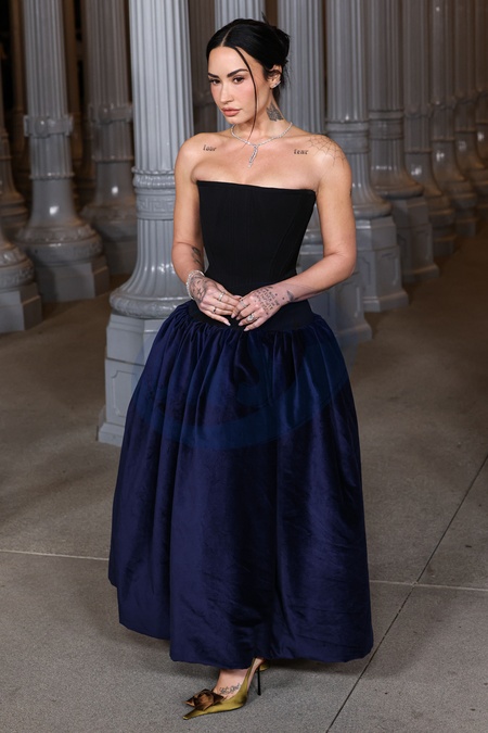 MUSEUM ROW, MIRACLE MILE, LOS ANGELES, CALIFORNIA, USA - NOVEMBER 01: Demi Lovato wearing Salih Balta and James Allen jewelry arrives at the 14th Annual LACMA (Los Angeles County Museum of Art) Art + Film Gala 2025 presented by Gucci held at the Los Angeles County Museum of Art on November 1, 2025 in Museum Row, Miracle Mile, Los Angeles, California, United States., Credit:Xavier Collin / Avalon