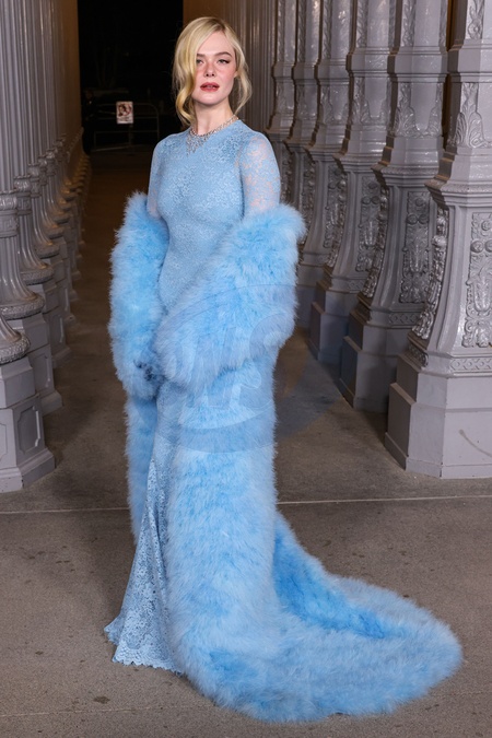 MUSEUM ROW, MIRACLE MILE, LOS ANGELES, CALIFORNIA, USA - NOVEMBER 01: Elle Fanning wearing Gucci arrives at the 14th Annual LACMA (Los Angeles County Museum of Art) Art + Film Gala 2025 presented by Gucci held at the Los Angeles County Museum of Art on November 1, 2025 in Museum Row, Miracle Mile, Los Angeles, California, United States., Credit:Xavier Collin / Avalon