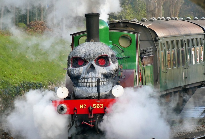 The Ghost Train at Swanage Railway. The T3 steam train refers to LSWR T3 class locomotive No. 563, a Victorian steam engine that is now a star attraction on the Swanage Railway. It was built in 1893 and, after being withdrawn in 1945, was saved from scrap and fully restored to working order by the Swanage Railway Trust. The locomotive first returned to steam in October 2023 and now runs on heritage services in the Isle of Purbeck, Credit:Geoffrey Swaine / Avalon