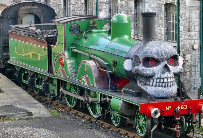 The Ghost Train at Swanage Railway. The T3 steam train refers to LSWR T3 class locomotive No. 563, a Victorian steam engine that is now a star attraction on the Swanage Railway. It was built in 1893 and, after being withdrawn in 1945, was saved from scrap and fully restored to working order by the Swanage Railway Trust. The locomotive first returned to steam in October 2023 and now runs on heritage services in the Isle of Purbeck, Credit:Geoffrey Swaine / Avalon