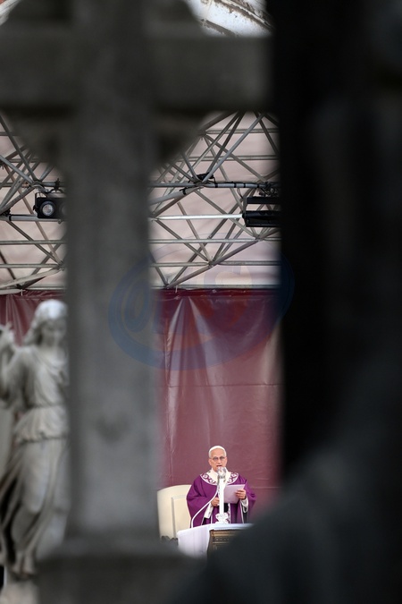 02/11/2025 Roma. Celebrazione della Messa per i defunti al Cimitero del Verano. Nella foto Francis Prevost, Papa Leone XIV presiede la celebrazione eucaristica all' ingresso monumentale del cimitero, Credit:Maria Laura Antonelli / Avalon