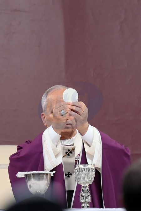 02/11/2025 Roma. Celebrazione della Messa per i defunti al Cimitero del Verano. Nella foto Francis Prevost, Papa Leone XIV presiede la celebrazione eucaristica tenendo l' ostia, Credit:Maria Laura Antonelli / Avalon