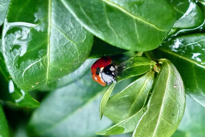 A ladybird on the leaves in the rain., Credit:Geoffrey Swaine / Avalon
