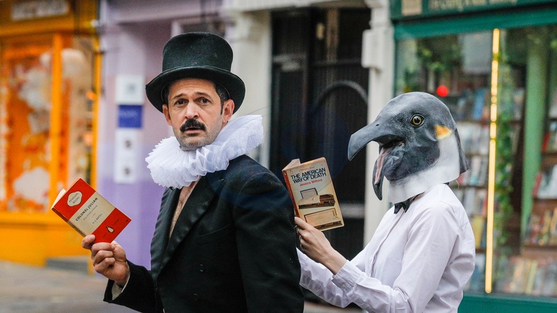 London, UK. 03rd Nov, 2025. Garry and the penguins waddle along Charing Cross Road, a road synonymous with bookshops in London. Penguin enthusiast and comedian Garry Starr (actor and writer Damien Warren-Smith) hosts his Penguin Book Club, bringing together 9 cute, larger than life penguins in Soho in a bid to save Penguin Classics from extinction ahead of his hit show 'Garry Starr: Classic Penguins' at the West End's Arts Theatre this November and December., Credit:Imageplotter / Avalon