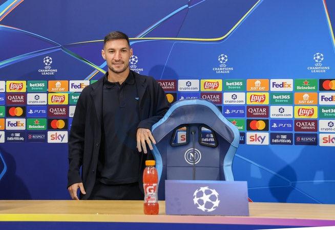 Matteo Politano of SSC Napoli during a press conferenze for the 2025/26 champions league on the 3rd of November 2025 in Naples, Italy, Credit:Fabio Sasso / Avalon