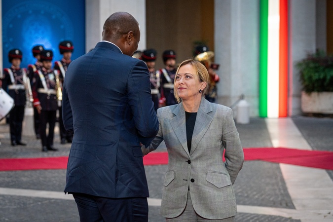Italian Prime Minister Giorgia Meloni receives the President of the Gabonese Republic, Brice Clotaire Oligui Nguema at Palazzo Chigi in Rome, Italy on 03 November 2025.