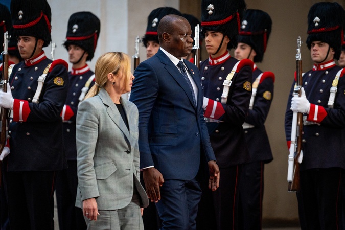 Italian Prime Minister Giorgia Meloni receives the President of the Gabonese Republic, Brice Clotaire Oligui Nguema at Palazzo Chigi in Rome, Italy on 03 November 2025.