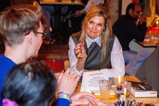 Amsterdam, The Netherlands, 2025-11-03 20:35:45AMSTERDAM, 03-11-2025, The Offline Club. Queen Máxima during a visit to The Offline Club in Amsterdam. The Offline Club is a social enterprise focused on fostering genuine, personal connections in a time when screens and digital distractions are playing an increasingly important role. PHOTO: NLBeeld/Patrick van Emst, Credit:Avalon