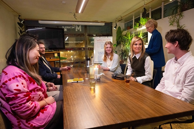 Amsterdam, The Netherlands, 2025-11-03 19:49:09AMSTERDAM, 03-11-2025, The Offline Club. Queen Máxima during a visit to The Offline Club in Amsterdam. The Offline Club is a social enterprise focused on fostering genuine, personal connections in a time when screens and digital distractions are playing an increasingly important role. PHOTO: NLBeeld/Patrick van Emst, Credit:Avalon