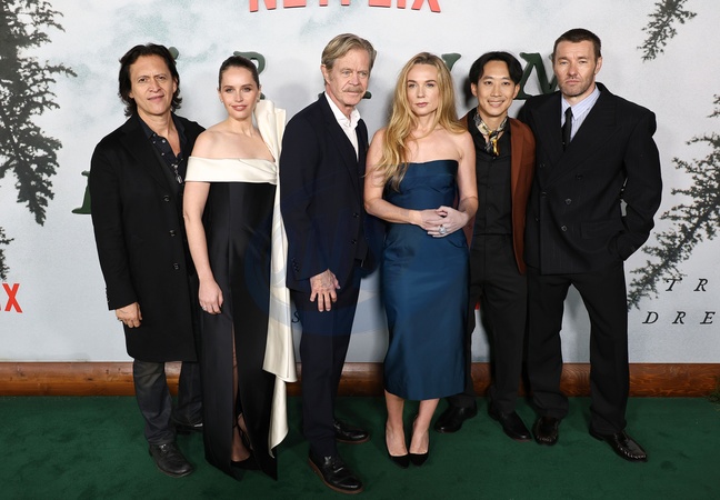 HOLLYWOOD, LOS ANGELES, CALIFORNIA, USA - NOVEMBER 03: Clifton Collins Jr., Felicity Jones, William H. Macy, Kerry Condon, Alfred Hsing and Joel Edgerton arrive at the Premiere Of Netflix's 'Train Dreams' held at The Egyptian Theatre Hollywood on November 3, 2025 in Hollywood, Los Angeles, California, United States., Credit:Juan Pablo Rico / Avalon