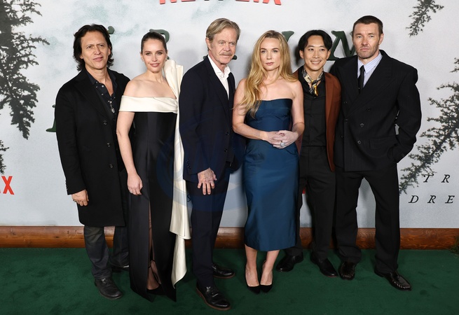 HOLLYWOOD, LOS ANGELES, CALIFORNIA, USA - NOVEMBER 03: Clifton Collins Jr., Felicity Jones, William H. Macy, Kerry Condon, Alfred Hsing and Joel Edgerton arrive at the Premiere Of Netflix's 'Train Dreams' held at The Egyptian Theatre Hollywood on November 3, 2025 in Hollywood, Los Angeles, California, United States., Credit:Juan Pablo Rico / Avalon