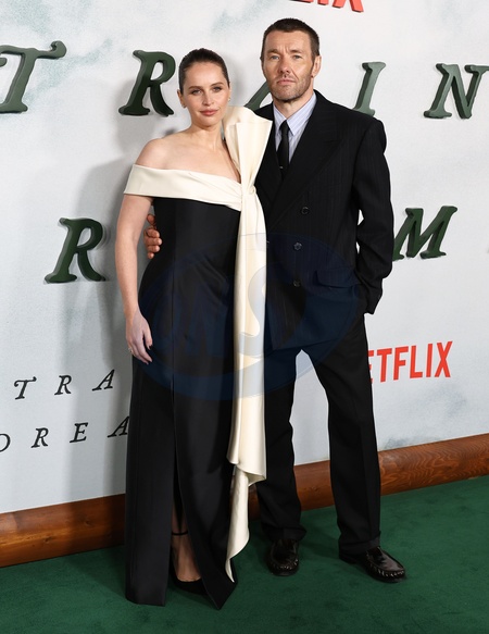 HOLLYWOOD, LOS ANGELES, CALIFORNIA, USA - NOVEMBER 03: Felicity Jones and Joel Edgerton arrive at the Premiere Of Netflix's 'Train Dreams' held at The Egyptian Theatre Hollywood on November 3, 2025 in Hollywood, Los Angeles, California, United States., Credit:Juan Pablo Rico / Avalon