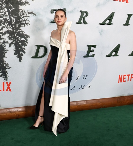 HOLLYWOOD, LOS ANGELES, CALIFORNIA, USA - NOVEMBER 03: English actress Felicity Jones arrives at the Premiere Of Netflix's 'Train Dreams' held at The Egyptian Theatre Hollywood on November 3, 2025 in Hollywood, Los Angeles, California, United States., Credit:Juan Pablo Rico / Avalon