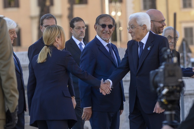 Italy, Rome, 4 November, 2025: Armed Forces Day, ceremony at the Altar of the Homeland, in the picture (R) the President Sergio Mattarella, the Premier Giorgia Meloni and (L) Ignazio La Russa, President of Senate, Credit:Stefano Carofei / Avalon