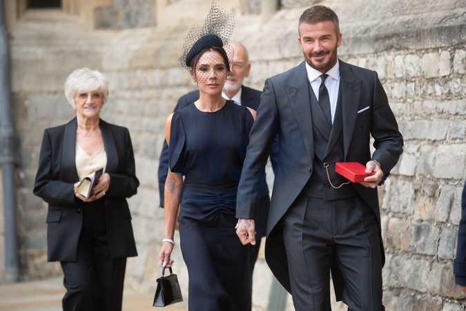 Sir David Beckham, wife Lady Victoria Beckham and parents Sandra and Ted arrive for a photograph after being awarded a Knighthood for services to Sport and to Charity at Windsor Castle, London, England, UK on Tuesday 4 November, 2025., Credit:Justin Ng / Avalon
