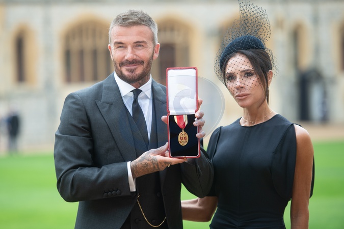 Sir David Beckham and Lady Victoria Beckham poses for, Credit:Justin Ng / Avalon