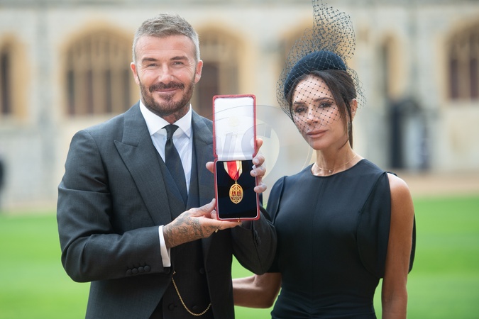 Sir David Beckham and Lady Victoria Beckham poses for, Credit:Justin Ng / Avalon